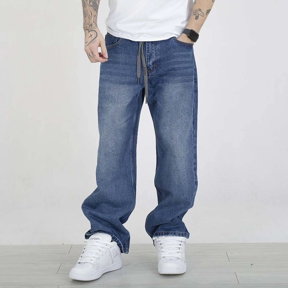 - Krój Baggy charakteryzujący się rozszerzanymi nogawkami