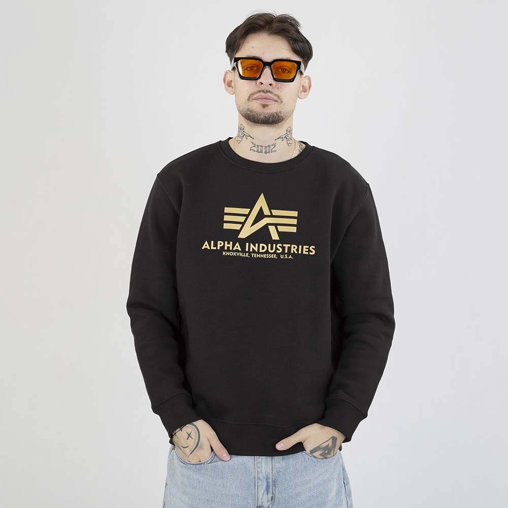 Bluza Alpha Industries Crewneck Basic Carbon 146311 czarno złota