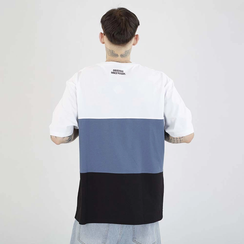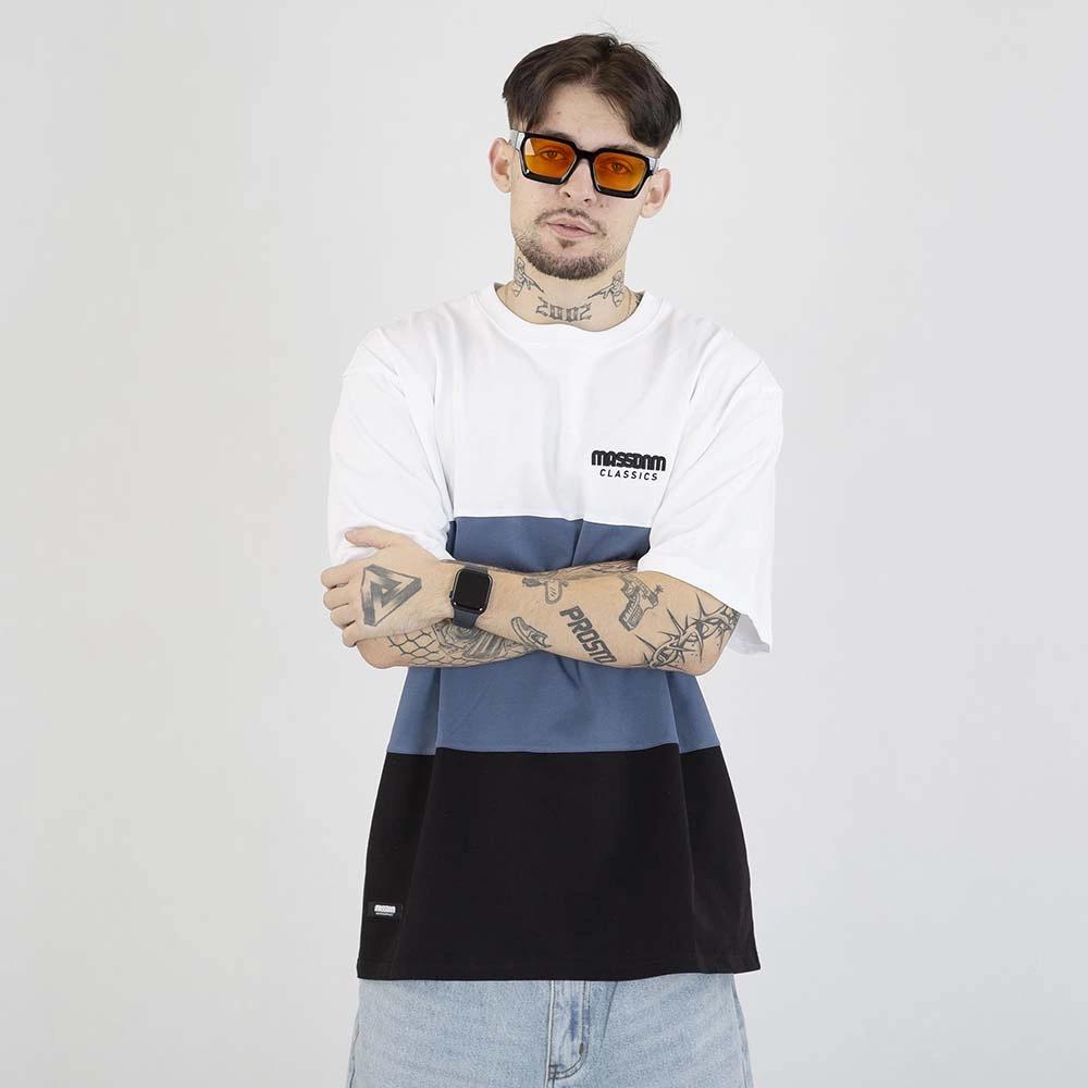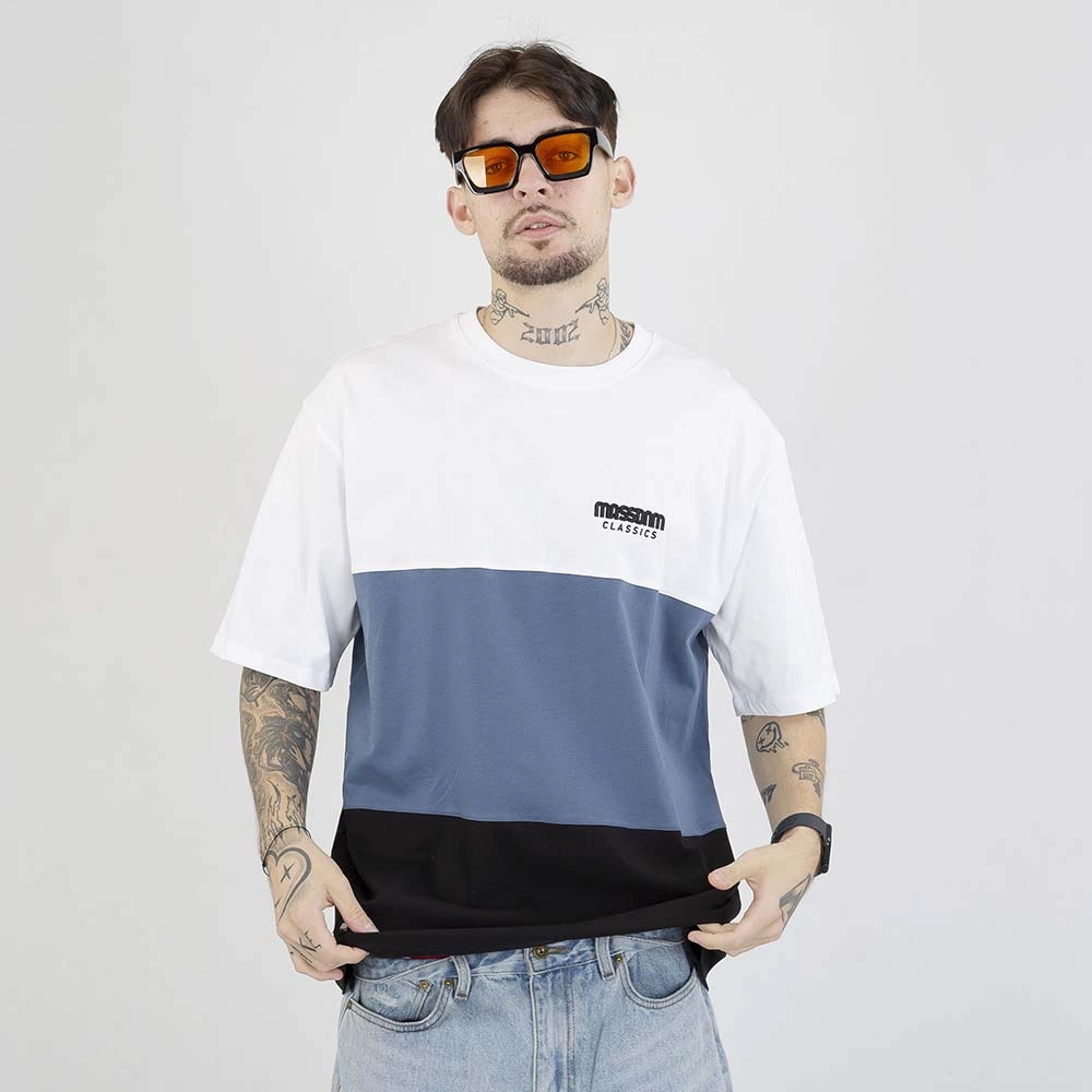 T-shirt Mass Zone biało niebiesko czarny