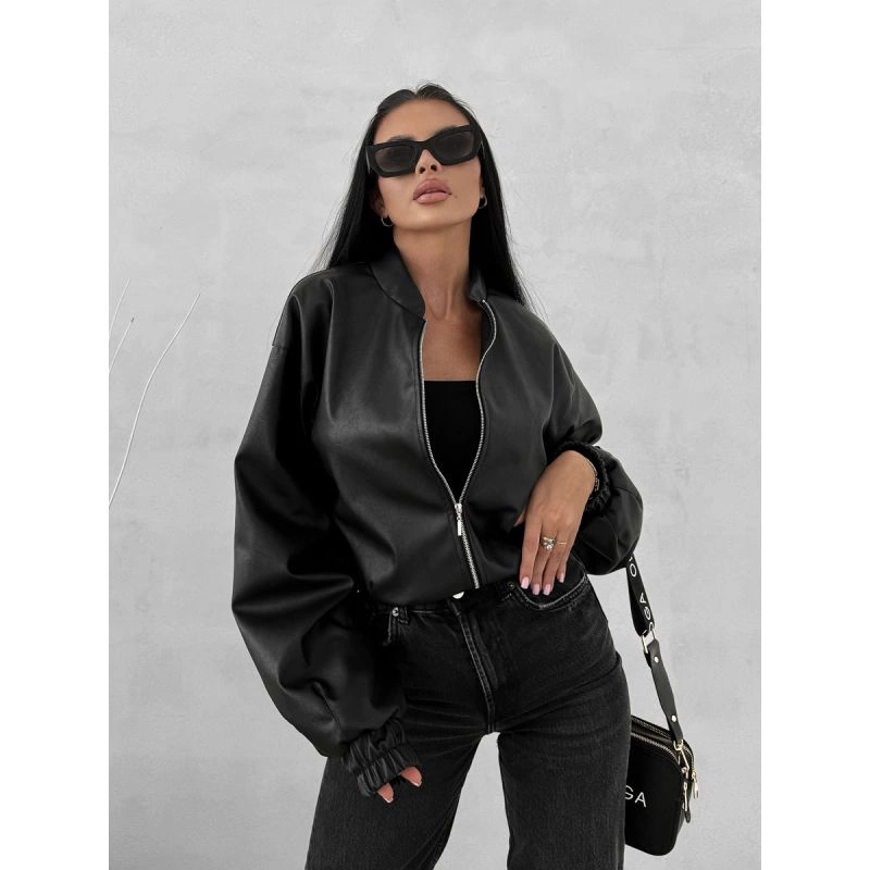- Krótka kurtka w stylu bomber jacket.